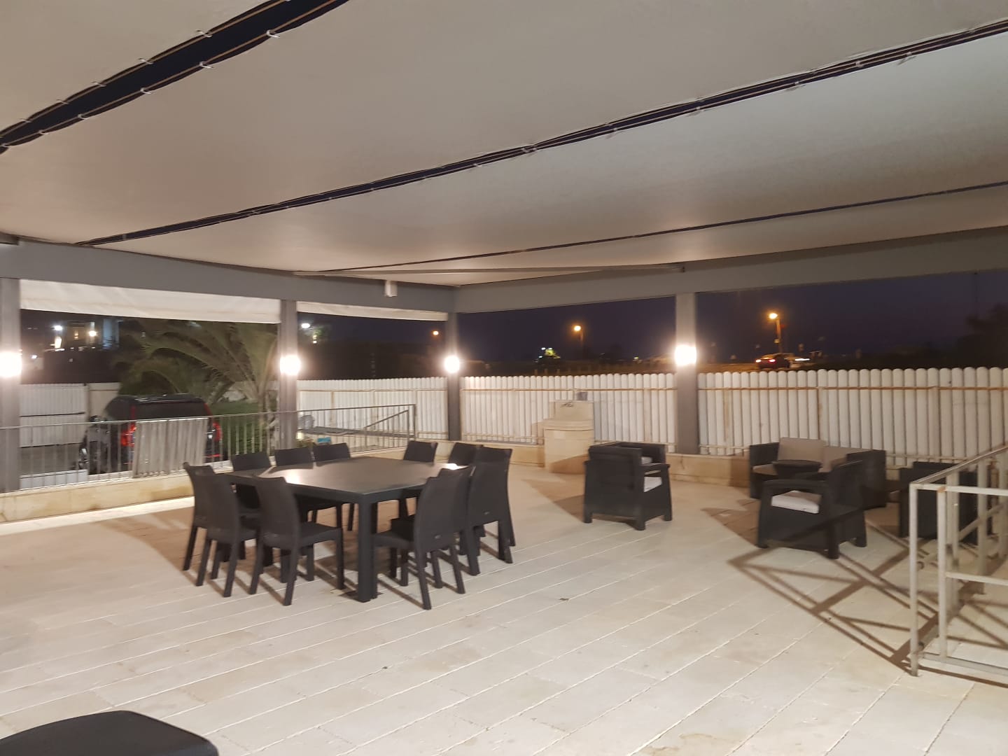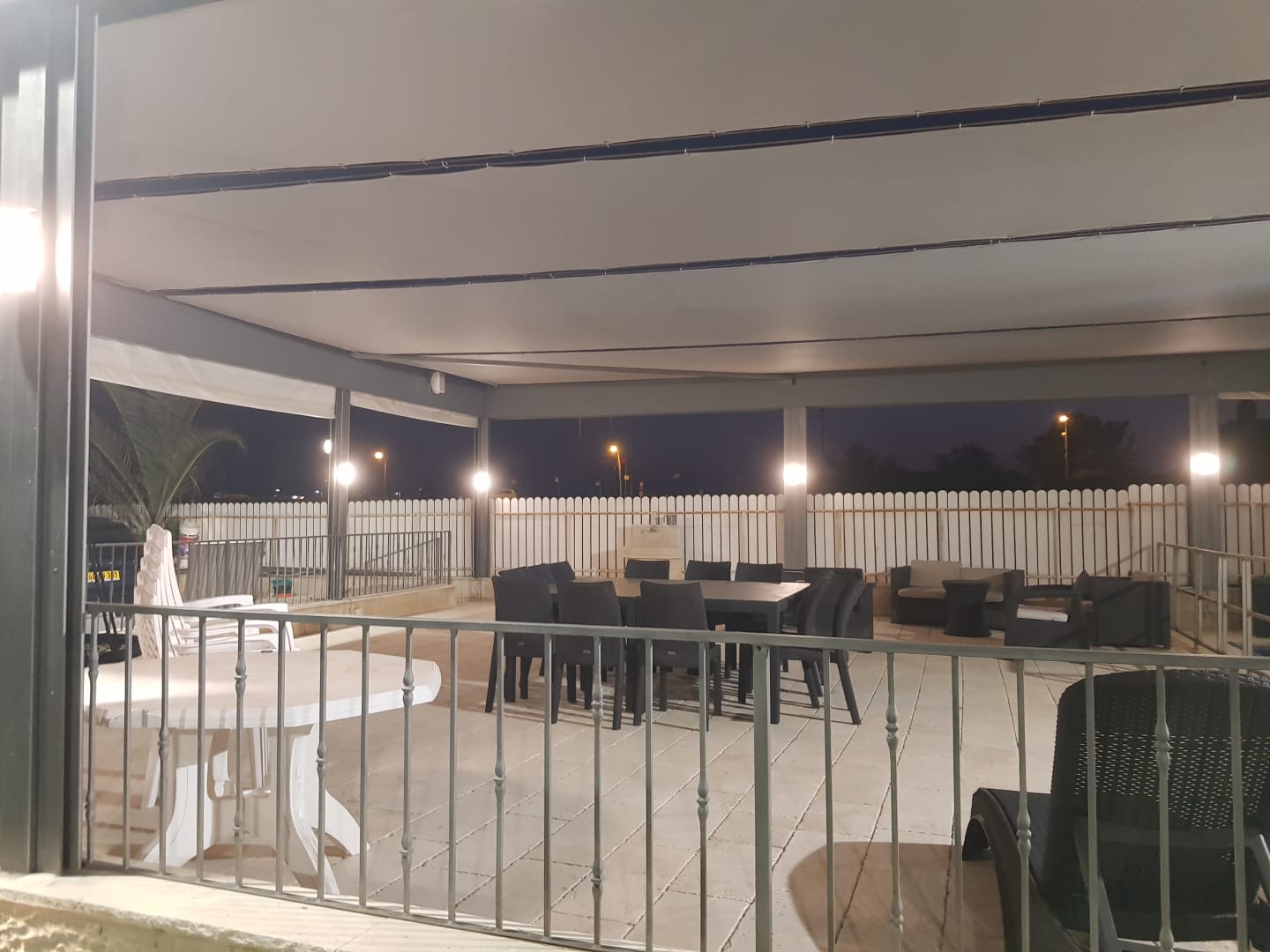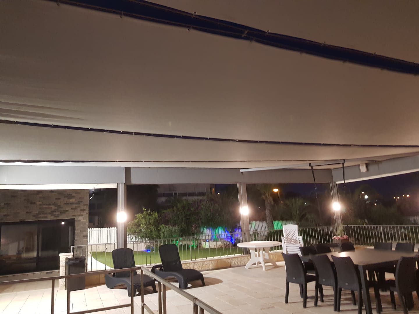 פרויקט ייצור והתקנת הצללה נגללת על כבלים מעל מתחם בריכה.