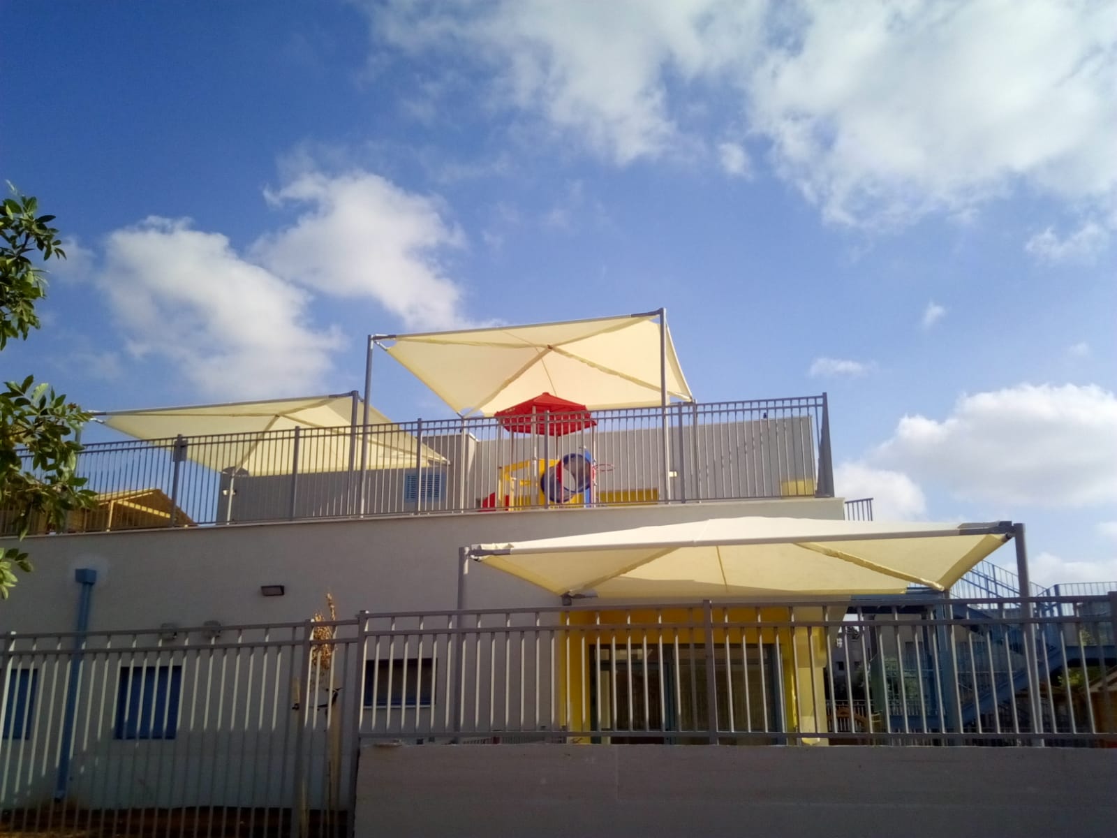 פרויקט ייצור והתקנת פגודות להצללה בכמה מקומות שונים באותו מבנה .